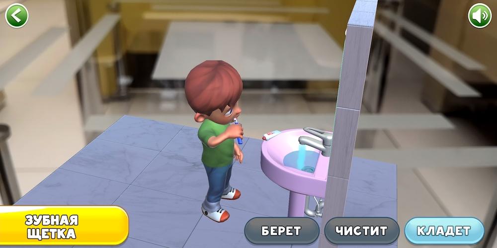 설명서는 응용 프로그램 내부에서 다운로드 할 수있는 가정 용품 이미지가있는 31 장의 카드 세트입니다. 스마트 폰이나 태블릿의 카메라를 카드 위에 올려 놓으면 증강 현실이 활성화되고 그림이 어린이가 개체를 사용하는 방법을 보여주는 애니메이션으로 변형됩니다. 애니메이션에는 러시아 영화와 연극 배우 인 Danila Kozlovsky가 쓴 시가 붙어 있습니다.