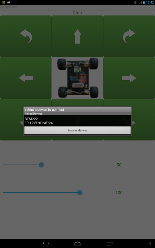 This application allows you to control any robot equipped with an Arduino board (tested with: Leonardo, Pro Micro) via bluetooth.