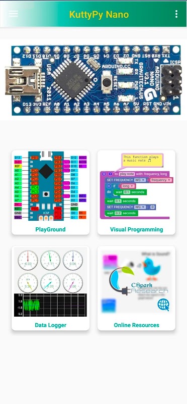 + 이제 제목 표시줄이 녹색으로 바뀌고 제목 텍스트가 'KuttyPy Nano'로 바뀌며 장치를 사용할 준비가 되었습니다.