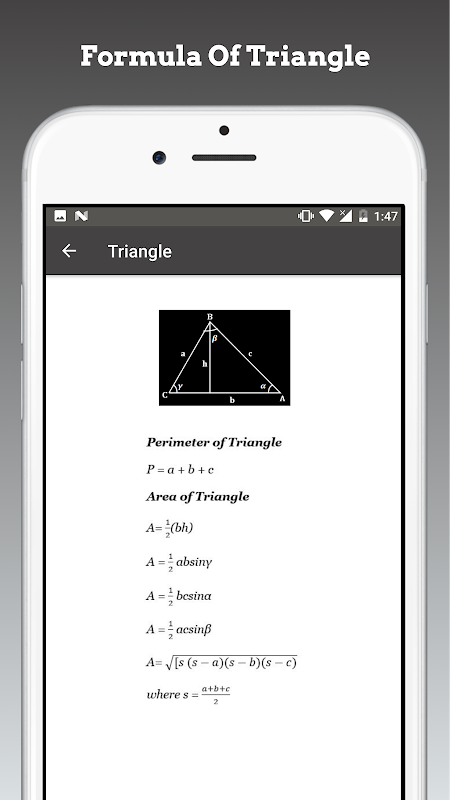 ►앱은 2D 모양, 표면적 및 부피에 대한 둘레 및 면적 공식을 보여줍니다.