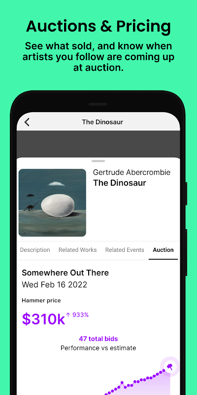 우리는 세계 최고의 경매를 모니터링하므로 귀하가 그럴 필요가 없습니다! 작품에 대한 입찰별 가격을 제공하고 이를 견적과 비교합니다.