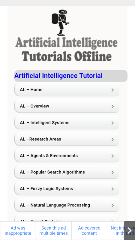 -> Artificial Intelligence Tutorial Offline come with complete comprehensive and responsive layout.