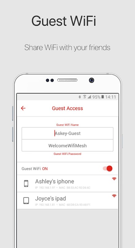 Askey 무선 메쉬 솔루션의 완벽한 동반자. Askey 무선 메쉬 응용 프로그램은 당신에게 당신의 가정 내 와이파이 네트워크의 전체 제어 할 수 있습니다. 이 응용 프로그램 덕분에, 당신은 알고 당신의 WiFi 네트워크에 대한 거의 모든 것을 관리 할 수. 당신의 무선 장치 이름을 지정하고 다른 방에 배치합니다. 쉽게 무선 네트워크의 이름과 암호를 선택합니다. 연결 속도를 확인합니다. 특별 자격 증명을 작성하고 방문자에 대한 액세스를 제공합니다. 자녀를 정의하고 온 / 오프 WiFi 연결 시간에 예약합니다. 개인 홈 네트워크를 유지하고 확보 - 당신은 단순히 네트워크에 연결 누가 볼 수있는 앱을 열고 부여 또는 몇 탭에서 액세스를 거부 할 수 있습니다. 설치, 구성 및 WiFi 네트워크를 모니터링하는 것은 너무 쉽게 노출되지 않았어요.
