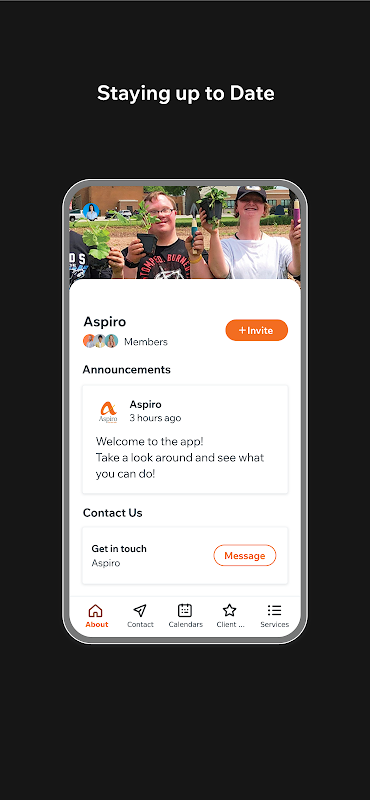아스피로 고객과 가족은 프로그램(주간 서비스 및 충만한 삶 만들기)과 행사(아스피로 및 프로젝트 검색) 캘린더를 확인하고, 활동에 등록하고, 아스피로의 알림을 받을 수 있습니다. 프로그램 설명, 연락처 정보 등을 확인할 수 있는 아스피로 웹사이트 전체에 접속할 수 있습니다.