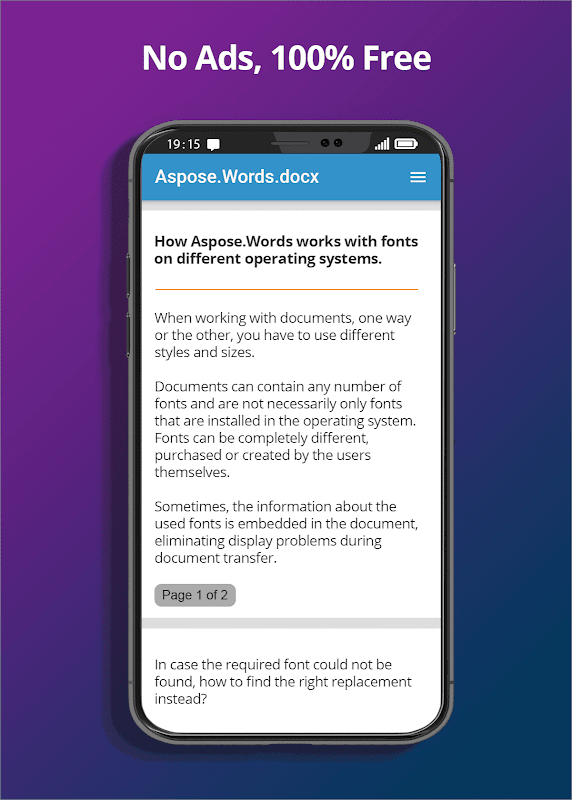 Aspose DocViewer is a 100% free document viewer, easy-to-use and without ads