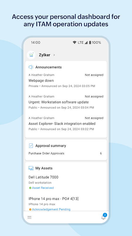 - 대시보드에서 공지사항과 할당된 자산을 추적하세요.