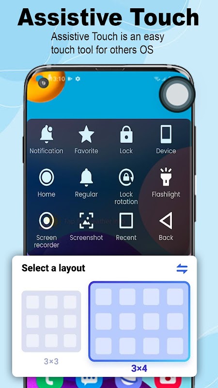 선호도에 맞게 플로팅 버튼을 맞춤 설정하고 상호 작용을 간소화하세요. 장치의 미적 특성에 맞게 다양한 테마와 스타일 중에서 선택하세요. 사용자 친화적인 인터페이스와 원활한 성능을 갖춘 Assistive Touch는 장치를 사용할 때마다 번거로움 없는 경험을 보장합니다.