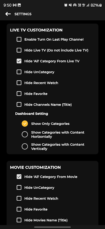 ✩ TV 채널 그리드 또는 목록 보기