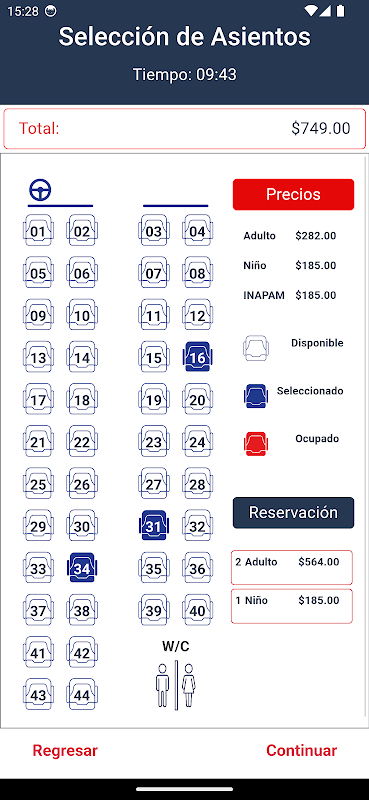버스의 배치를 시각화하고 여행 선호도에 맞는 좌석을 선택하세요.