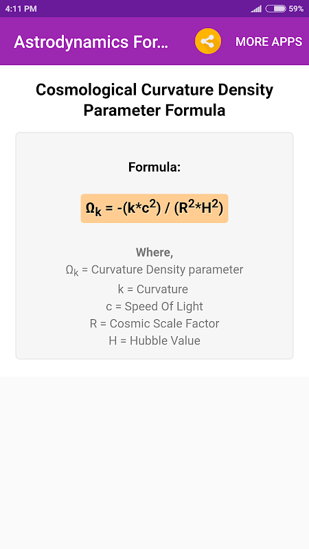 The app lists all the important Astrodynamics formulas. Its very useful for student to save valuable time.