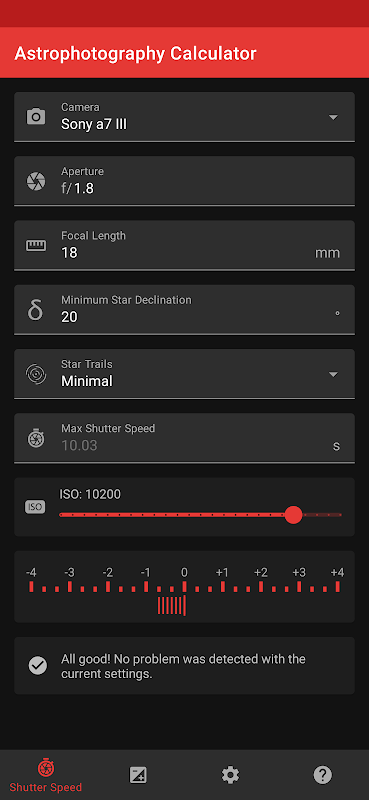 Simple and intuitive app to calculate the ideal exposure time while shooting astrophotography.