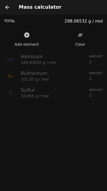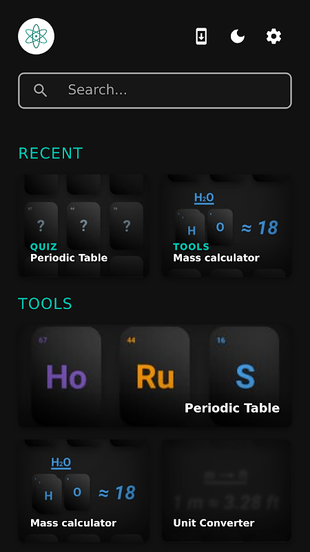 Atom은 검색 가능한 주기율표를 제공하므로 모든 요소에 필요한 정보를 빠르게 찾을 수 있습니다. 또한 원자 번호, 원자 질량, 전자 구성, 전기 음성도, 산화 상태, 결합 유형, 녹는점, 끓는점, 밀도, 발견 연도 및 원자가에 액세스할 수 있습니다.