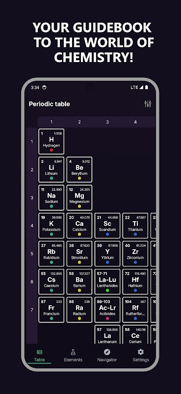 우리 앱은 상세한 특성을 가진 모든 화학 원소를 찾을 수 있는 주기율표를 제공합니다. 원자 번호, 질량, 범주뿐만 아니라 더 자세한 정보도 알아보세요. 이름이나 기호로 요소를 쉽게 검색하고, 카테고리별로 필터링하고, 즐겨찾기에 추가하여 빠르게 액세스할 수 있습니다.