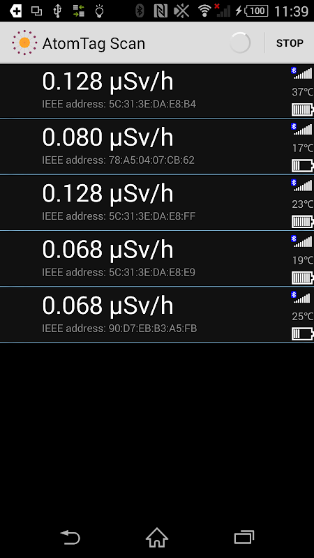 Atom Tag works in standalone mode if wireless communication with smartphone or tablet PC is lost. 3 user-programmable dose rate and accumulated dose thresholds with different alarm signals (sound or vibration) can be programmed by user for standalone mode. Information on accumulated dose is stored while Atom Tag is in standalone mode and can be read after establishing wireless communication. One smartphone or tablet PC can be connected to many Atom Tags at once.