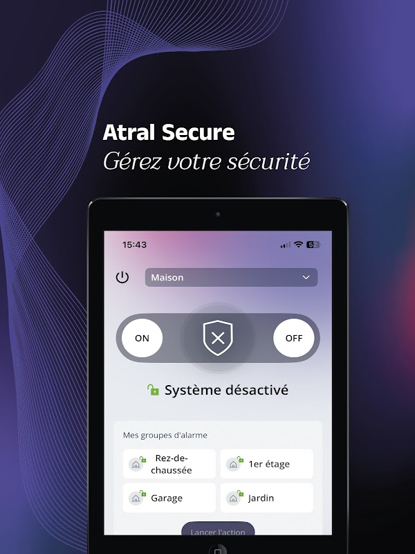 • Atral 경보 시스템을 제어하세요. 시스템을 켜고(전체 또는 부분적으로) 끄세요.