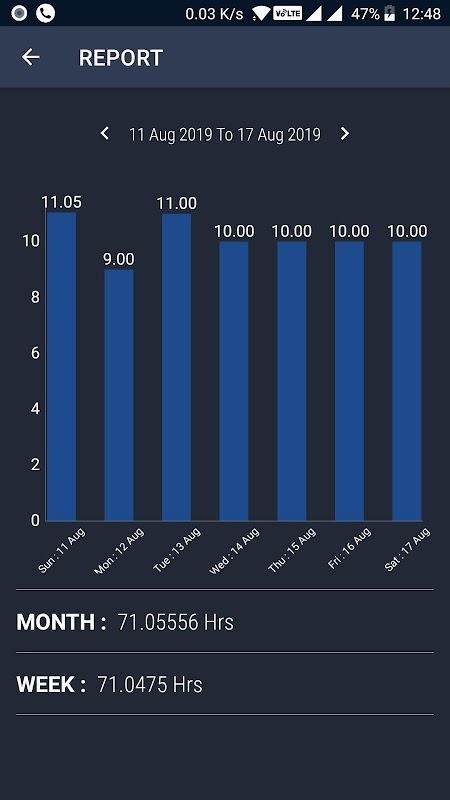 * Weekly Graphical summary with total Time .