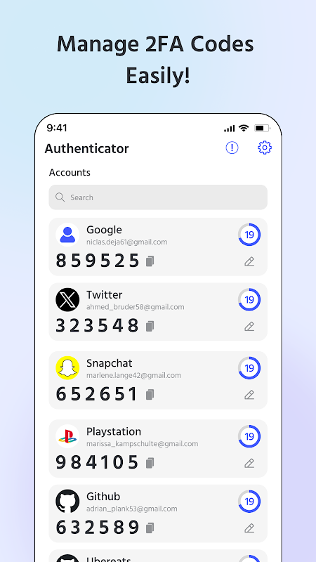 이 2FA 인증기는 초보자부터 숙련자까지 모든 사용자를 위해 설계되었으며, 깔끔한 UI와 원활한 성능을 통해 2단계 인증 및 계정 보안을 한 곳에서 관리할 수 있도록 지원합니다.