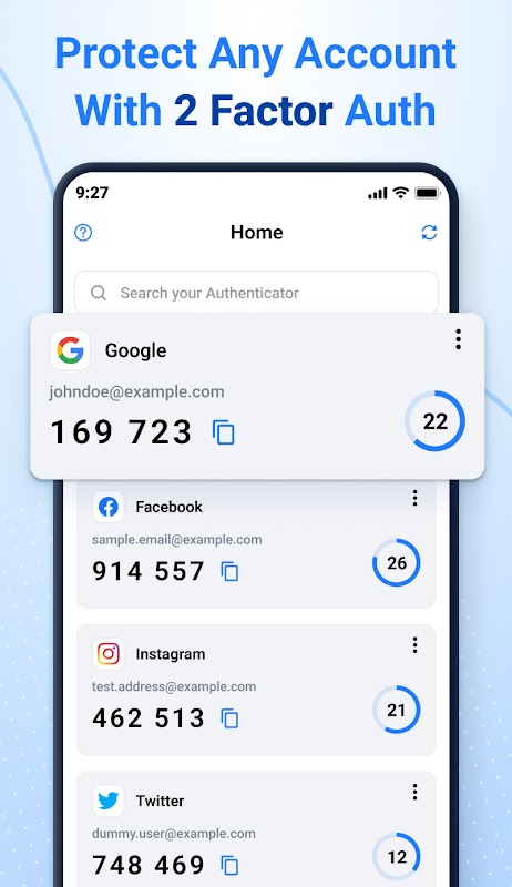 Google 계정, Facebook, Amazon, Snapchat 등을 포함하여 여러 계정을 앱에 추가할 수 있습니다. 지금 다운로드하여 온라인 보안을 관리하세요! 🔏