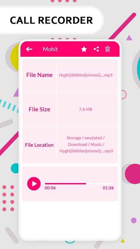 * You can manage your recording files, Listen to the recording, add notes and share it. Synchronized to the cloud as well. Record calls automatically with high quality while you in incoming calls or outgoing calls.