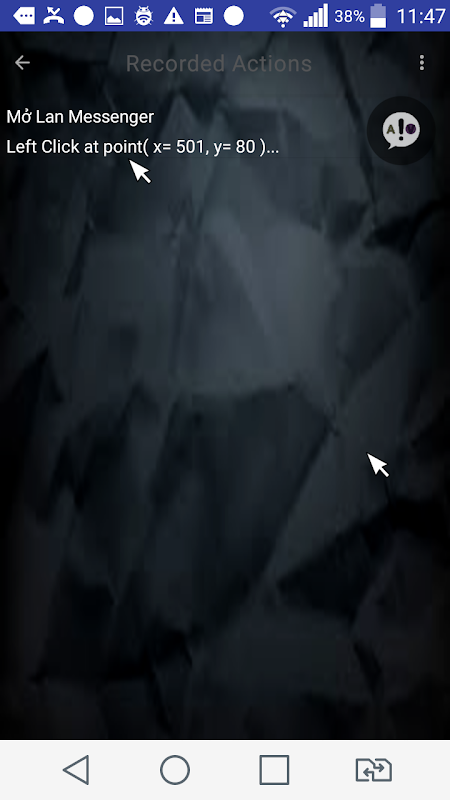 - Allow to record and save actions ( click, swipe left), swipe right, scroll forward, scoll backward, go home, back, settings, recents, power dialog )