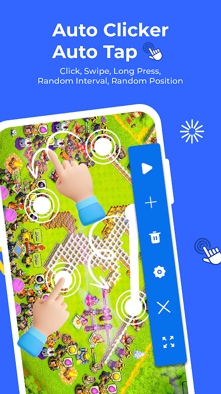 Auto Clicker - Auto Tap is a tool simulates clicks repeatedly . You can set click positions, click sequence , frequency and record swipe gestures anywhere. Automatic screen clicker makes it easy to continuous clicking on your phone.