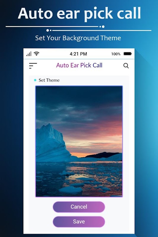 A unique customizing caller id which automatically picks up your incoming call, when you place your phone near your ear. You don't have to click answering button or any other button to pick up your call.