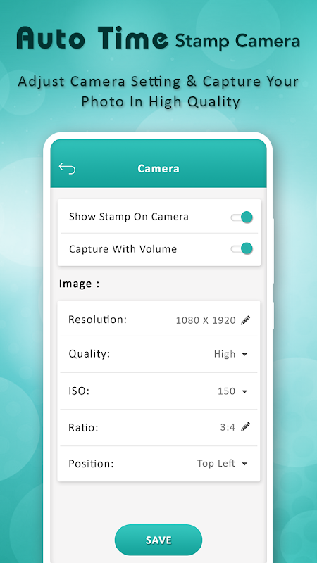 자동 타임 스탬프 카메라 사진을 사용하면 "저장된 갤러리 사진"에 날짜 및 타임 스탬프 태그와 로고 워터 마크를 빠르게 추가하고 소중한 추억을 영원히 장식 할 수 있습니다.