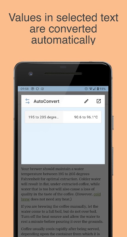 자동 변환은 단위, 시간대 및 통화를 변환합니다. 앱에서 텍스트를 선택하고 메뉴에서 변환을 선택하십시오.