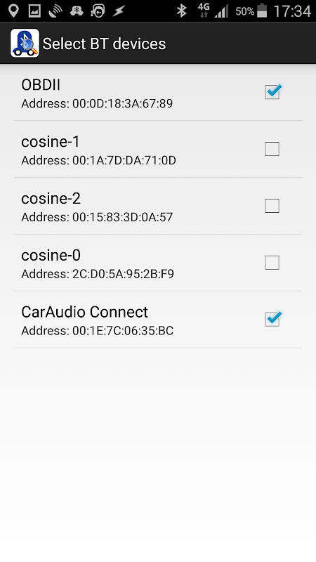 6. Some cheap Bluetooth devices (for example certain OBDII adapters) all have the same address. Since the app can't tell them apart, they won't work - you could be tracking someone else's car instead of your own.