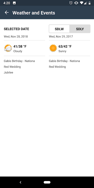또한 향후 기상 변화에 대한 기대치를 설정하기 위해 지역 기상 정보 및 공휴일이 포함되어 있습니다. 몇 번의 클릭만으로 전국 스포츠 행사 및 지역 행사를 추가하고 프로모션, 라이브 음악 및 해피 아워 스페셜도 포함하십시오.