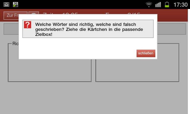 Jeder Test umfasst 15 Fragen und dauert 20 Minuten. Muss die App beispielsweise wegen eines Anrufs geschlossen werden, stoppt die Zeit.