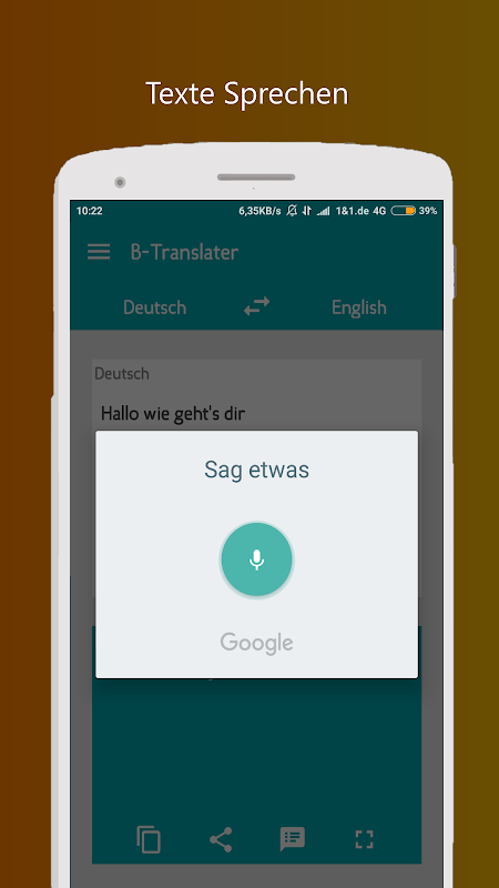 Sprechen Sie mit B-Translater, um den Gesprochenen Text in einer andren Sprache zu übersetzen.