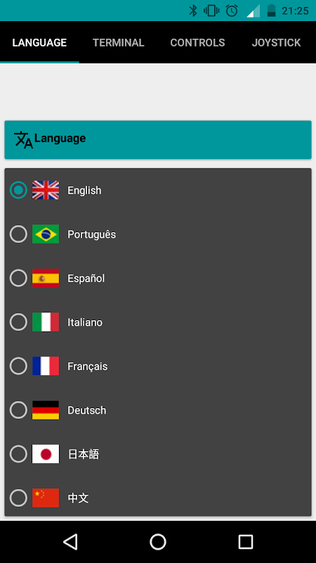 3° Utilize um dos modos: Controle[Joystick] , Painel de controle [switchers, buttons e sliders] ou Terminal [Troca de Mensagens]