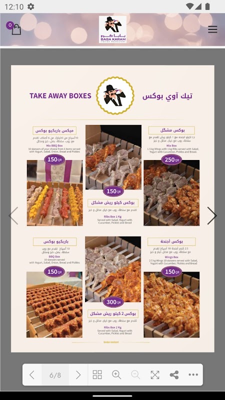 مطعم “بابا كرم” من أشهر المطاعم الرّائدة في مجال تقديم الأطباق الإيرانية الشّهية متخصّص بالمشاوي على أنواعها. كما يوفّر أطعمة متنوعة من أطباق رئيسية مثل جلو كباب شقف بالروب، صينية بابا كرم مشكل وغيرها الكثير بالإضافة إلى خدمة تيك أوي بوكس كميكس باربكيو بوكس، الحساء والسلطات. أطباقنا الشهية مع خبرة طاقمنا الطويلة تنتج أطيب وألذ طعم. يركز مطعم “بابا كرم” على المصداقية والعمل على اقتحام السوق بمستوى عالي من الجودة مما أدى إلى الوصول لمعدل متميز ومرموق في إرضاء العميل والوصول إلى قاعدة عريضة من العملاء الذين يثقون بجودة المنتج والخدمة المقدمة.