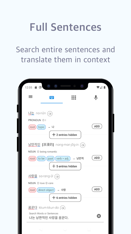 오프라인 사전, 문법 분석기, 예문 및 어휘 퀴즈!