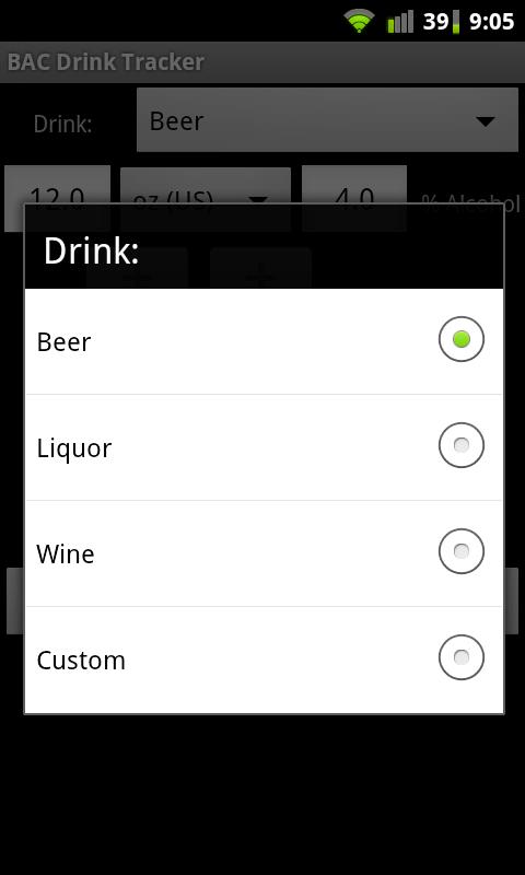 Calculate your blood alcohol concentration and keep track of your drinking session. BAC Drink Tracker keeps a chronological list of drinks you have entered and displays an estimation of current blood alcohol concentration. If you are above the user set limit, an estimated time until that limit is reached is shown. Calculations are performed for each drink individually, not just based on the time of the first drink and total alcohol. This provides more accuracy if drinks have long delays in between.
