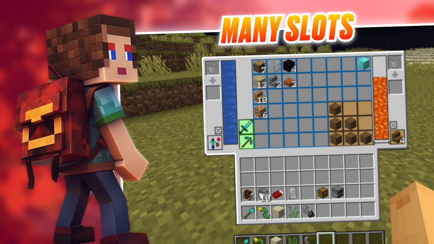 가방을 사용하면 무기고를 최대한 효율적으로 관리할 수 있습니다. 애드온을 사용하면 베이스캠프나 창고로 돌아가지 않고도 다양한 아이템을 수집하고 보관할 수 있습니다. Backpack Craft Mod MCPE Bedrock은 길고 위험한 모험을 자주 하는 경우 특히 유용합니다. 화려한 색상과 다양한 장식 아이템 유용한 배낭 모드는 바닐라 세계를 더욱 밝게 만들어 줄 것입니다.