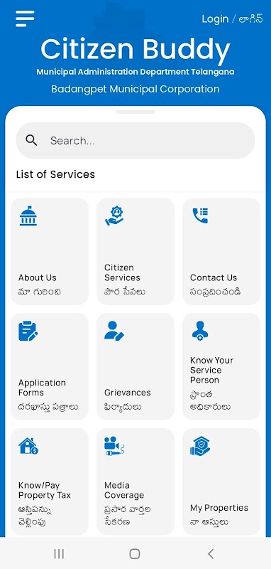 Badangpeta Municipal Corporation 시민을위한 시민 버디 모바일 앱. 시민은 자신의 재산세를 알고 지불 할 수 있으며, 수도세는 불만, 불만 사항을 등록하고 해결할 수 있습니다. 응용 프로그램은 또한 도시의 시민과 도시 지방 바디 응용 프로그램 사이의 다리 역할을합니다