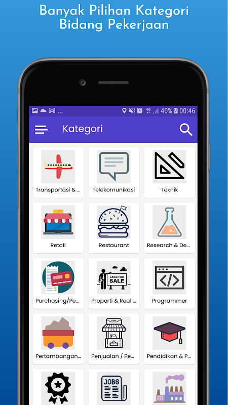 Para Perusahaan dapat memposting lowongan kerja di aplikasi ini dengan sangat mudah, terdapat 36 bidang pekerjaan yang dapat dipilih.