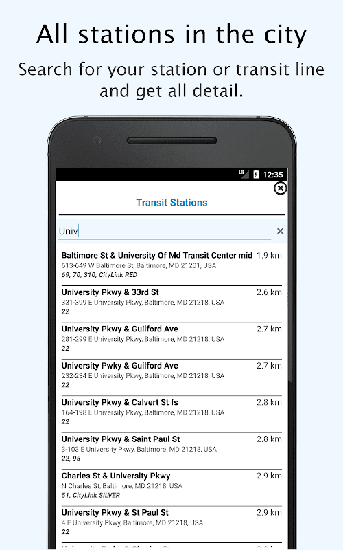 간편하고 안정적인 볼티모어 대중교통 앱으로 더 빠르게 목적지에 도착하세요. 실시간 출발 정보를 확인하고, 출발지에서 도착지까지 가는 경로를 계획하고, 오프라인에서 전체 시간표를 탐색하세요. 지역 주민, 통근자, 학생, 방문객을 위해 제작된 지하철, 트램, 버스, 페리를 위한 깔끔한 앱입니다.