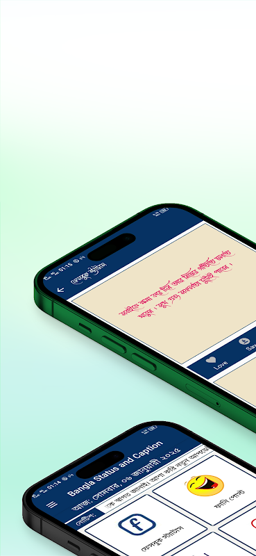 "Bangla Status: Bangla Status"는 감정을 공유하고 자신감을 높이며 연결을 강화하는 최고의 동반자입니다. 사랑, 생각, 감정을 창의적이고 쉽게 표현할 수 있는 힘을 실어줍니다.