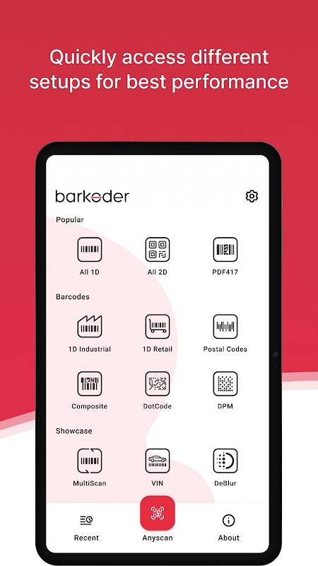 - DeBlur 모드: 심하게 흐릿한 EAN 및 UPC 코드 인식