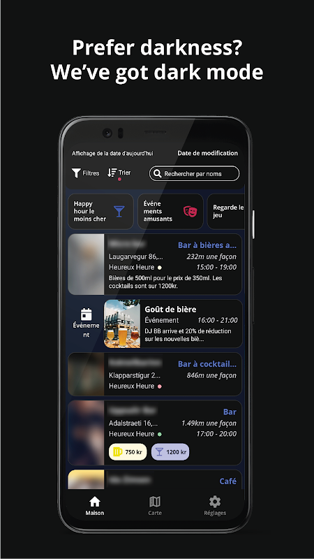 Barhopp을 사용하면 해피 아워 및 음료 할인과 같은 훌륭한 거래를 찾을 수 있습니다. 또한 아이슬란드의 펍, 나이트클럽, 바 및 기타 장소에서 일어나는 이벤트에 대한 훌륭한 개요도 얻을 수 있습니다!