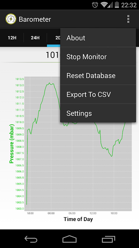 - Periodical reading of barometric pressure (every 15 minutes / 30 minutes / 1 hour)