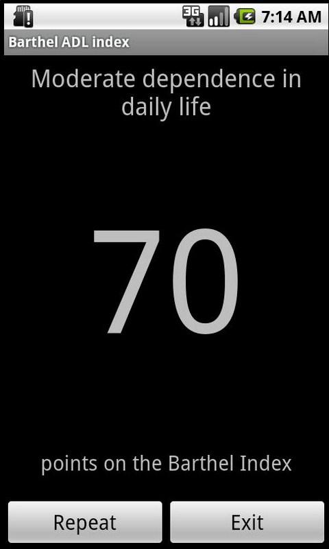 프로그램은 바델 지수를 사용하여 장애의 정도 (외부 지원에 대한 의존도를) 평가할 수 있습니다.