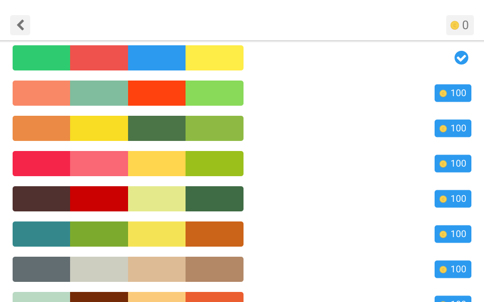 The game begins with a standard color set, but you can spend coins and buy different color sets as you improve!