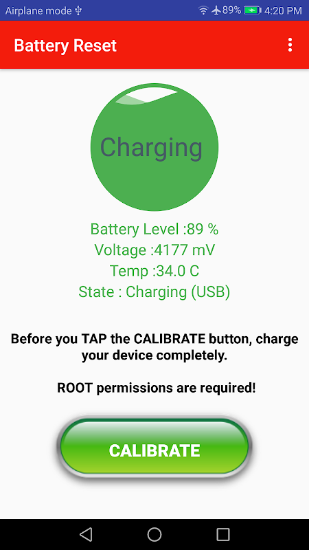 The app will try to reset the power meter of your battery, it will work with any device having root permissions, otherwise it won't work.. Your device should be fully charged before you tap the Calibrate button.