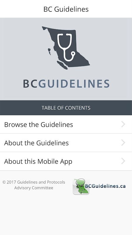 The British Columbia (BC) Guidelines Mobile App contains all 50+ BC clinical practice guidelines in an optimized mobile format. Supplementary content including appendices and resources are also included within the app which is capable of functioning without an active internet connection (It is fully "offline" capable).