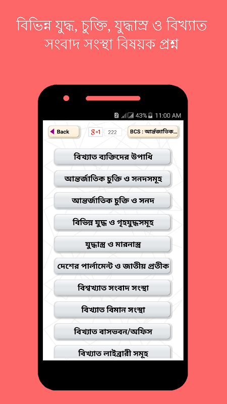 BCS is the largest public examination conducted by Bangladesh Public Service Commission to recruit people to Bangladesh Government Civil Services.The examination is conducted in three phases - the Preliminary examination, the Written examination and the Viva Voce (Interview). BCS : আর্ন্তজাতিক বিষয়াবলী application covered all topic in BCS preparation International section. Find other bcs online test apps in our store. We have Bcs math apps, Professors cs guide, Guide on bcs bangladesh, Bcs app for geography, Bcs online test apps for Bangla Literature, Bcs preparation for General Knowledge, Bcs math solution or Bcs math preparation, Instruction for bcs bangladesh affairs and bcs written guide , All bcs question and answer for bcs preliminary test.