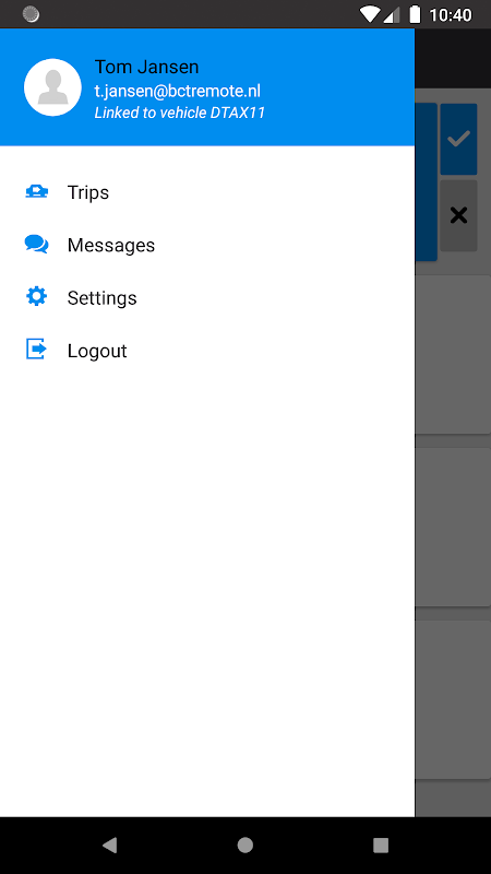 Cabman Remote 앱은 Cabman BCT용 추가 기능으로, 휴대폰으로 여행 주문을 받을 수 있도록 해줍니다. 예를 들어, Cabman BCT에서 새로운 여행 명령을 받자마자 차 안에 있지 않은 경우에 유용합니다. 푸시 알림을 받고 여행 주문을 쉽게 수락하거나 거부할 수 있습니다.